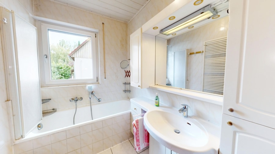 ein Tageslichtbad mit Badewanne,