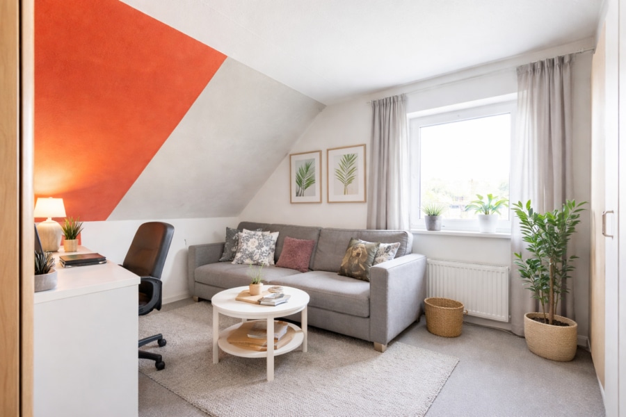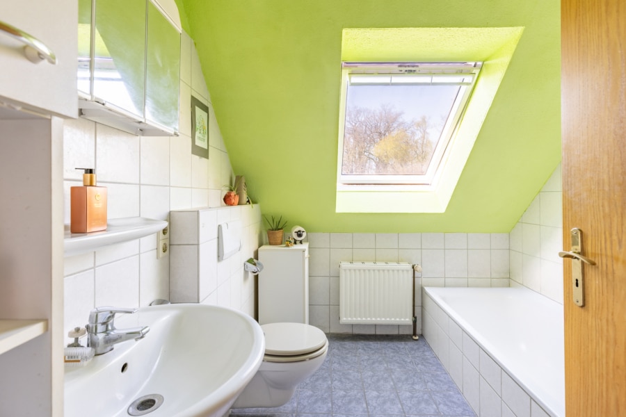 Weitere Maßnahmen wie die Dämmung der Zwischendecke zum Dachboden im Jahr 2021 sowie neue Velux-Dachfenster im Obergeschoss (2024) sorgen für zusätzlichen Wohnkomfort und Energieeffizienz (Energieklasse C).