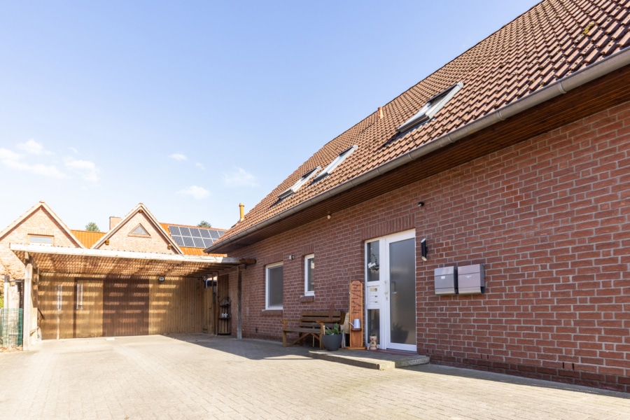 Ein Doppelcarport direkt am Haus sowie drei weitere Stellplätze im Freien sorgen für ausreichend Parkmöglichkeiten.