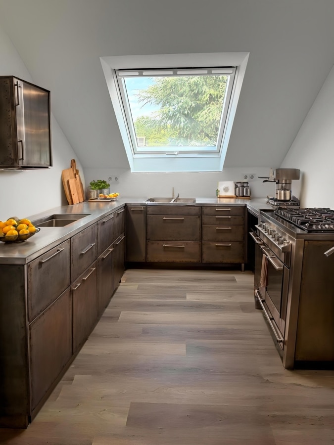 Die Küche ist separat gehalten und lässt sich durch ihre Größe effizient und komfortabel gestalten – ob mit Frühstücksplatz oder praktischer Einbauküche.