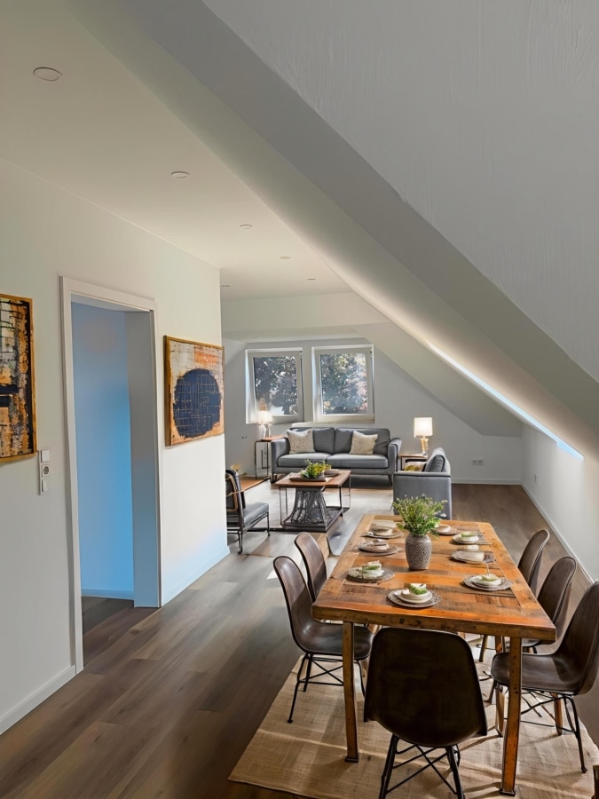 Diese außergewöhnliche Dachgeschosswohnung bietet rund 75 m² puren Wohnkomfort auf einer gesamten Etage in einem gepflegten Zweifamilienhaus.