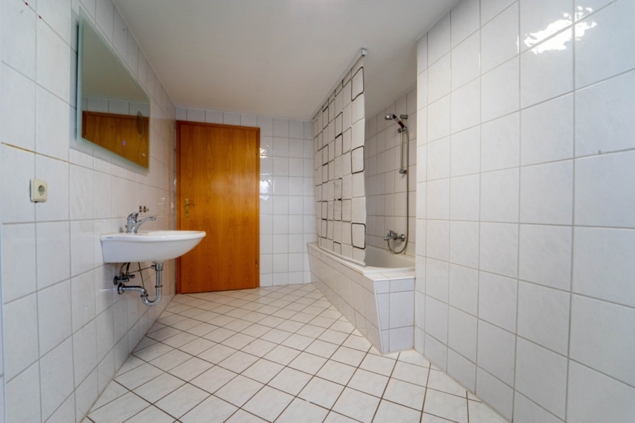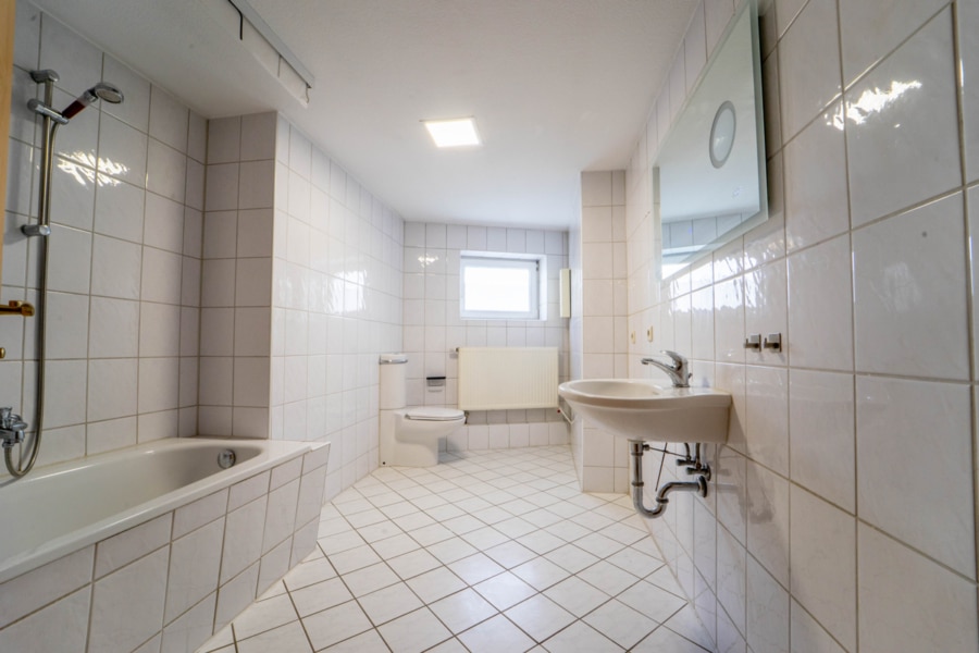 Ein Highlight ist das helle Tageslichtbad mit Fenster und Badewanne – ideal für ein wohltuendes Bad nach einem langen Tag. Die moderne Ausstattung mit pflegeleichten Fliesen sowie stilvollem Laminatboden in den Wohnräumen schafft ein zeitgemäßes, wohnliches Flair.