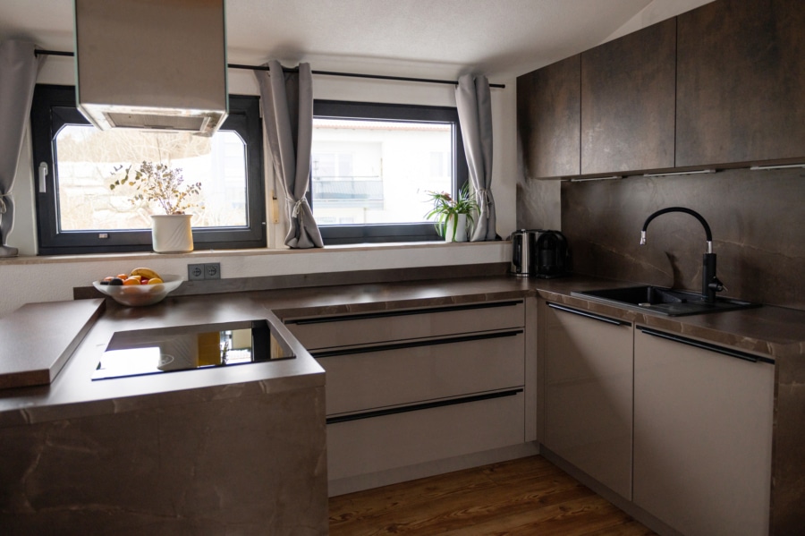 Ein Highlight ist der großzügige Außenbereich: Neben einem Balkon steht Ihnen eine traumhafte Dachterrasse zur Verfügung, die nach Ihren eigenen Vorstellungen auf Kosten des jetzigen Eigentümers fertiggestellt wird. Der perfekte Ort, um den Feierabend zu genießen. Die hochwertige Einbauküche ist bereits im Kaufpreis enthalten und rundet das Angebot ab.