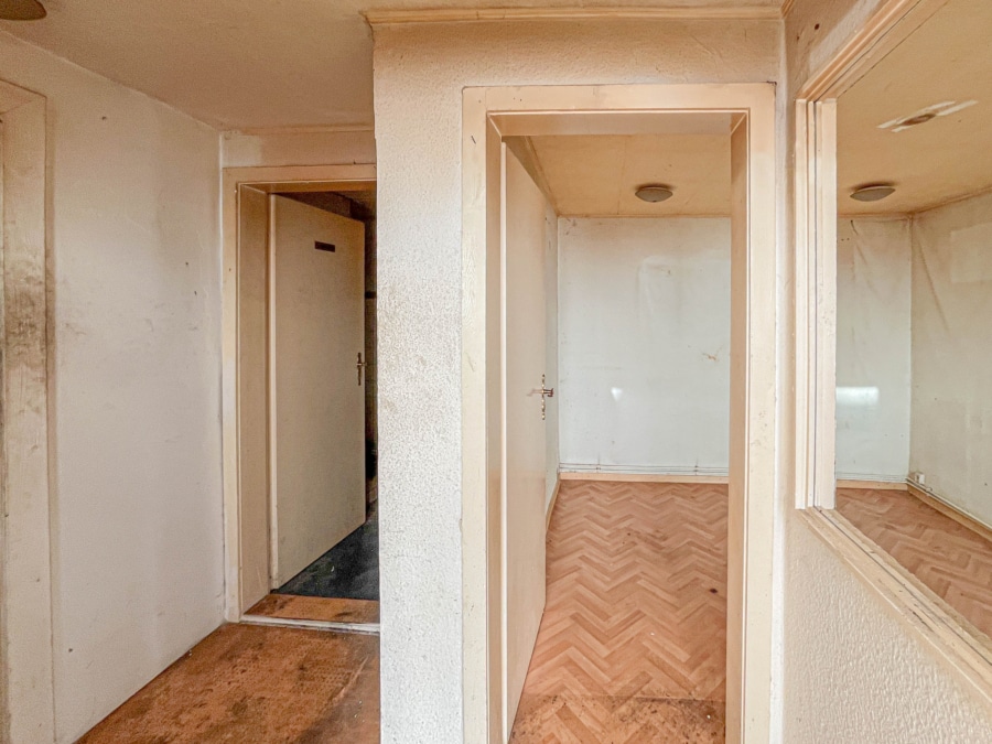Die Raumaufteilung ist kompakt und funktional: Über einen kleinen Eingangsflur gelangen Sie in zwei Zimmer sowie in das Badezimmer. Die vorhandene Struktur bietet vielfältige Gestaltungsmöglichkeiten – ob als gemütliche Kleinwohnung, Atelier, Büro oder als charmante Single- bzw. Pärchenwohnung.