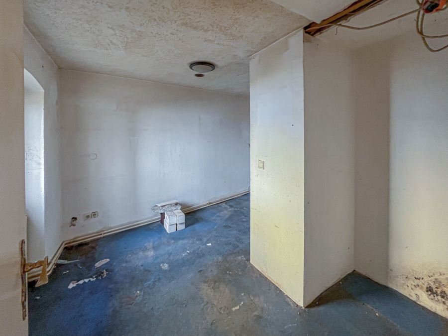 Der aktuelle Zustand ist renovierungsbedürftig. Feuchtigkeit und fehlende Dämmung erfordern eine umfassende Sanierung, um den heutigen Wohnstandards zu entsprechen. Die bestehende Gaszentralheizung stammt aus dem Jahr 2004. Mit handwerklichem Geschick und kreativen Ideen lässt sich hier jedoch ein individuelles Kleinod mit viel Charakter schaffen – ein Projekt mit Potenzial für alle, die den Charme alter Bausubstanz zu schätzen wissen.
