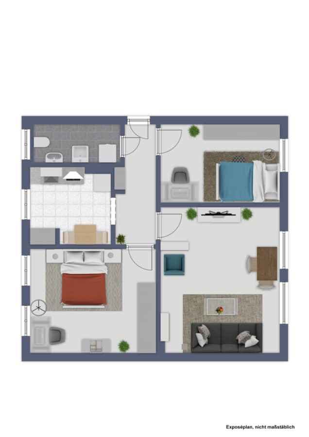 Die ca. 68 m² Wohnfläche verteilen sich optimal auf drei gut geschnittene Zimmer, was ein großzügiges und vielseitig nutzbares Raumkonzept ermöglicht. Alle Räume sind hell und freundlich gestaltet, ausgestattet mit gepflegten Holzfenstern, die dem Wohnraum eine charmante Note verleihen. Die separate Küche bietet ausreichend Platz für einen kleinen Essbereich und ist funktional gestaltet. Das Badezimmer ist mit einer modernen Dusche ausgestattet und überzeugt durch seine zeitlose, klare Gestaltung.