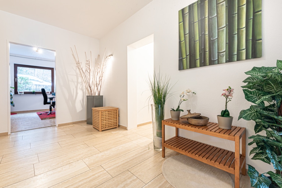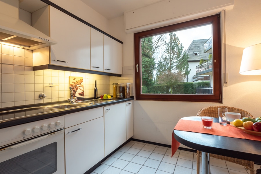 Das Tageslichtbad wurde 2005 erneuert und verfügt über Wanne und Dusche. Ergänzt wird es durch ein modernes Gäste-Duschbad – ebenfalls aus dem Jahr 2005. Die Küche bietet ausreichend Platz für einen kleinen Frühstückstisch. Rollläden (überwiegend 2021 neu eingebaut und elektrisch betrieben) an allen Fenstern sowie eine Elektrofußbodenheizung runden den Wohnkomfort ab.