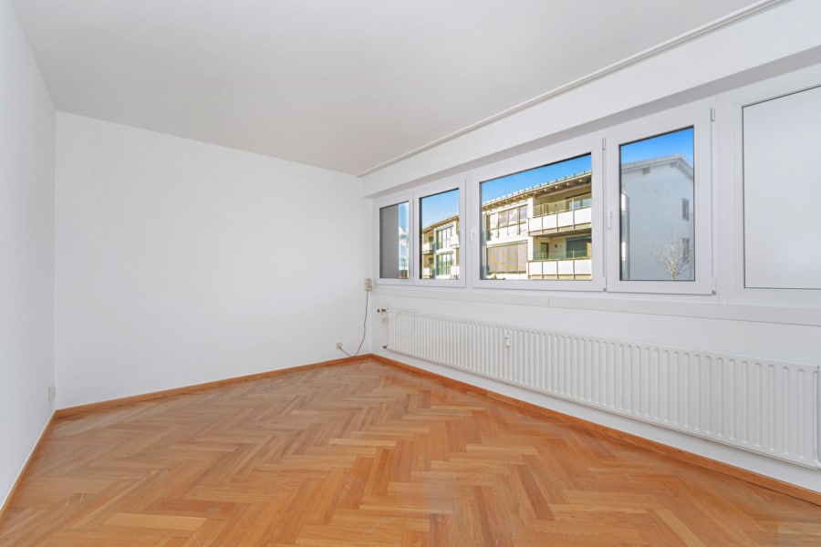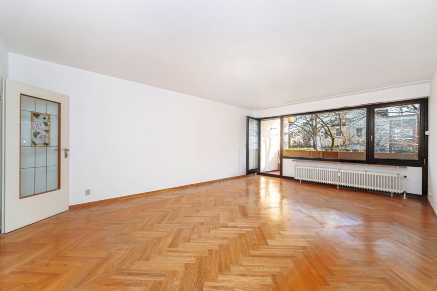 Ein großzügiger Wohnbereich mit Zugang zur sonnigen Südloggia bildet das Herzstück der Wohnung. Die Loggia ist überdacht und bietet einen geschützten Platz zum Entspannen – ob morgens mit Kaffee oder abends bei einem Tee.