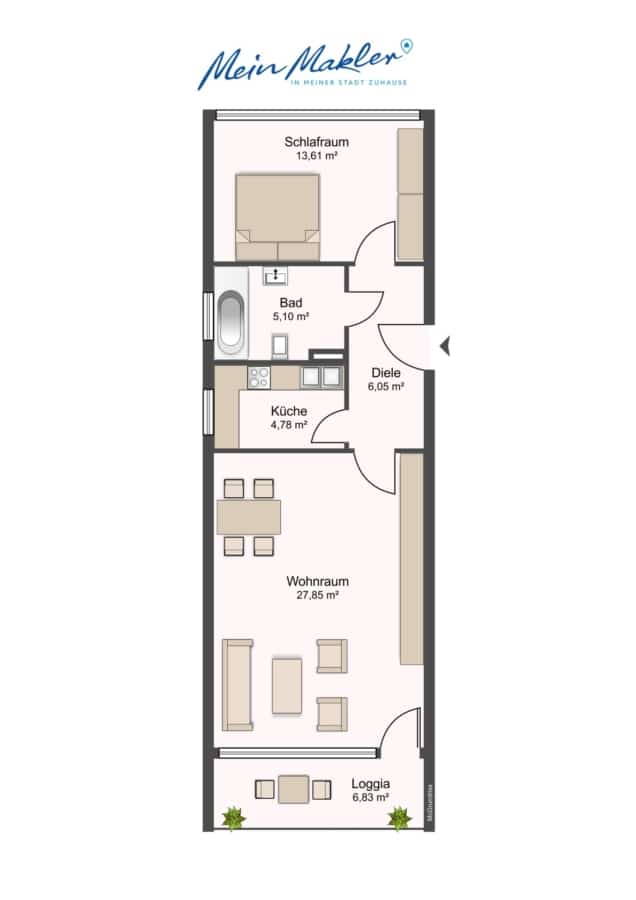 Mit einer durchdachten Aufteilung auf rund 60 m² Wohnfläche bietet sie alles, was man für ein komfortables Zuhause braucht: