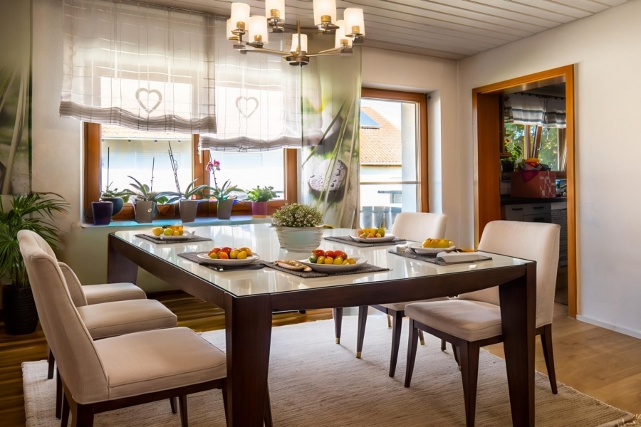 lichtdurchfluteter Wohn- und Essbereich mit direktem Zugang zum sonnigen Balkon