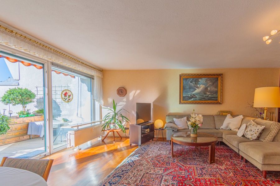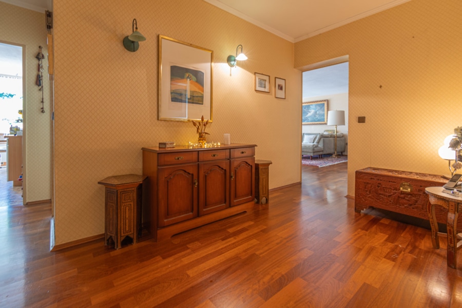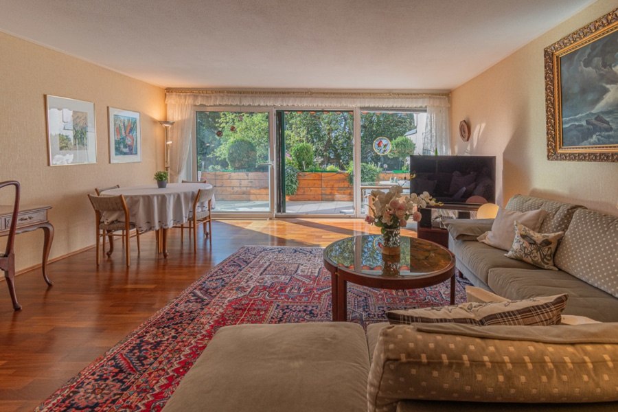 Das Wohnzimmer verfügt über großzügige ca. 46,50 m² und ist lichtdurchflutet, dank der bodentiefen Fensterfront. In der gesamten Wohnung wurden viele Renovierungen im Jahr 1999 durchgeführt, darunter die Elektrik, die Heizkörper, das Badezimmer, die Fensterfront und der gepflegte Bodenbelag.