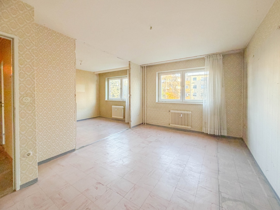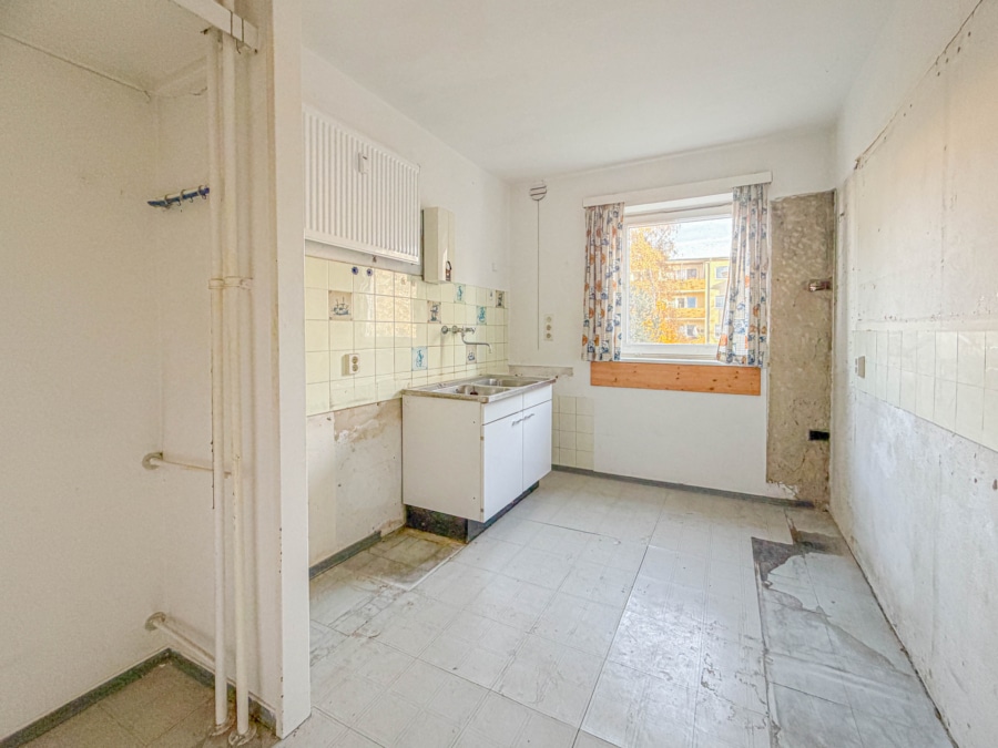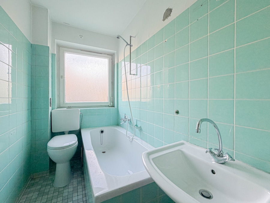 Die Wohnung ist renovierungsbedürftig, stammt aus dem Jahr 1967 und befindet sich größtenteils im Originalzustand. Hier können Sie also von Grund auf neu gestalten: Bodenbeläge, Wände, Elektrik, Bad oder Küche – alles wartet darauf, in neuem Glanz zu erstrahlen. Die Bausubstanz ist solide, was eine gute Grundlage für eine wertsteigernde Modernisierung bietet.