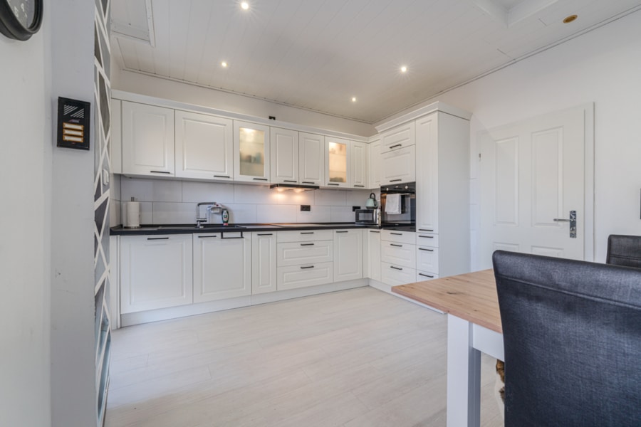- Erdgeschoss: Große Küche mit Zugang zum gemeinschaftlichen Garten, gemütliches