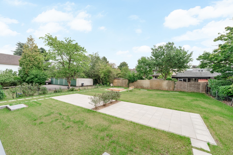 Ein besonderes Highlight ist der private Garten mit gepflegten Rasenflächen und ansprechender Bepflanzung. Die rund 20 m² große Terrasse lädt zum Entspannen, Sonnenbaden oder zu geselligen Abenden im Freien ein und erweitert den Wohnraum ins Grüne.