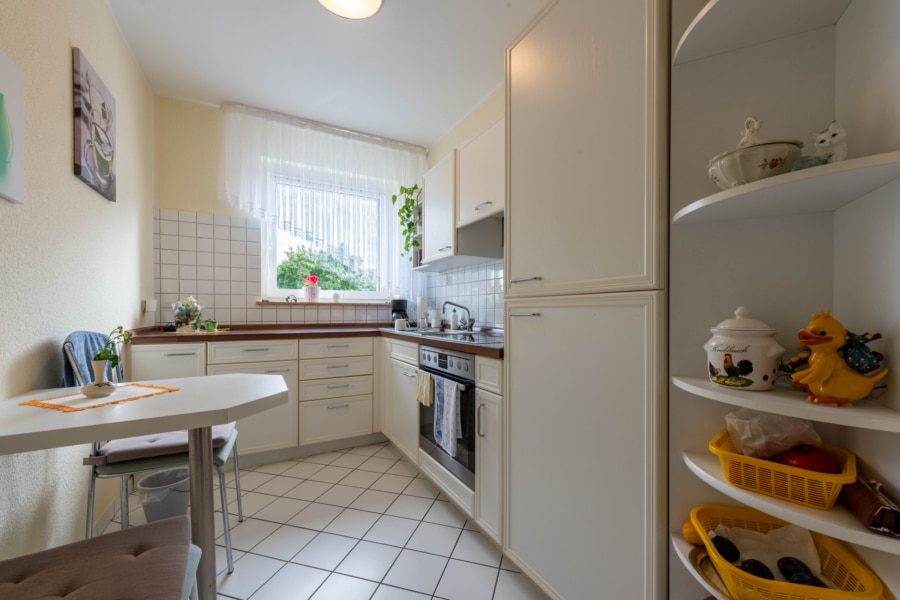 Zur Wohnung gehören ein separater Kellerraum sowie Gemeinschaftsräume wie Waschküche, Trockenraum und Fahrradkeller. Die Anlage wird seit 1995 von einer etablierten Essener Hausverwaltung betreut und präsentiert sich insgesamt in sehr gepflegtem Zustand.
