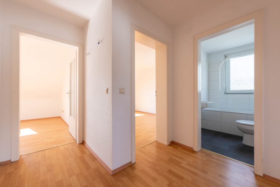 Die Wohnung befindet sich in einem einzugsbereiten Zustand. Alle Wohnräume, die Diele und die Küche sind mit pflegeleichtem Laminat ausgestattet.