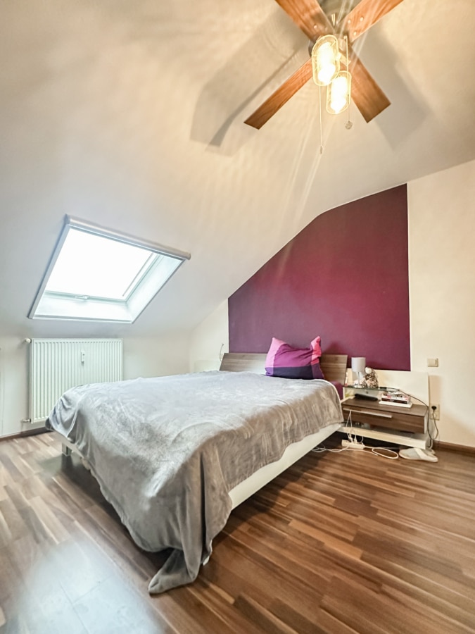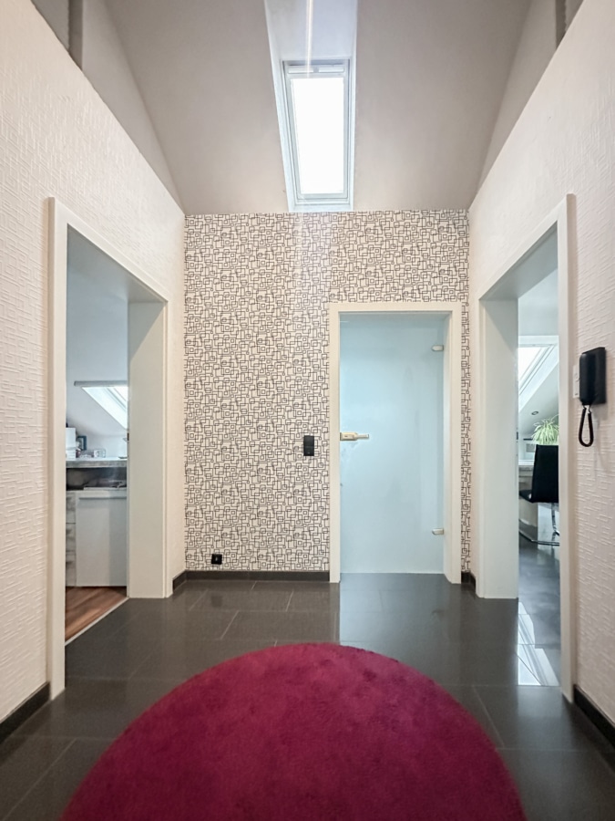 Die Wohnung begeistert auf den ersten Blick durch ihre großen Dachflächenfenster, die die Räume mit Tageslicht durchfluten und für eine besonders freundliche Wohnatmosphäre sorgen. Die elektrischen Rollläden ermöglichen dabei eine bequeme und flexible Beschattung – ideal für warme Sommertage.