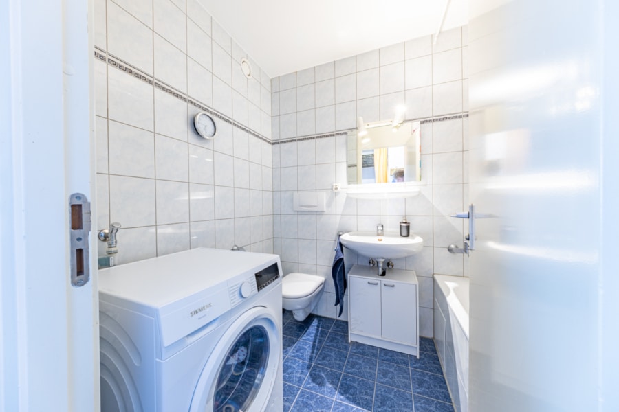 - Badezimmer mit Duschwanne und Waschmaschinenanschluss
