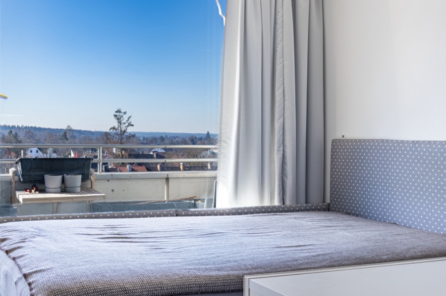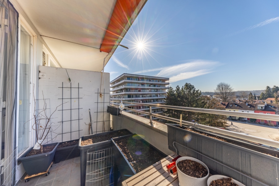 Ein besonderes Highlight ist der sonnige Südbalkon, der vom Wohnzimmer aus zugänglich ist und einen schönen Blick über die Dächer von Planegg bietet. Zur Wohnung gehört außerdem ein separates Kellerabteil. Ein Aufzug im Haus sorgt für komfortablen Zugang.