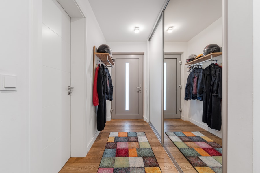 Zwei Außenbereiche – eine sonnige Terrasse und ein großzügiger Balkon – laden zum Entspannen im Freien ein. Elektrische Rollläden, eine energieeffiziente Luftwärmepumpe, ein eigener Kellerraum sowie ein Tiefgaragenstellplatz unterstreichen den gehobenen Wohnkomfort.