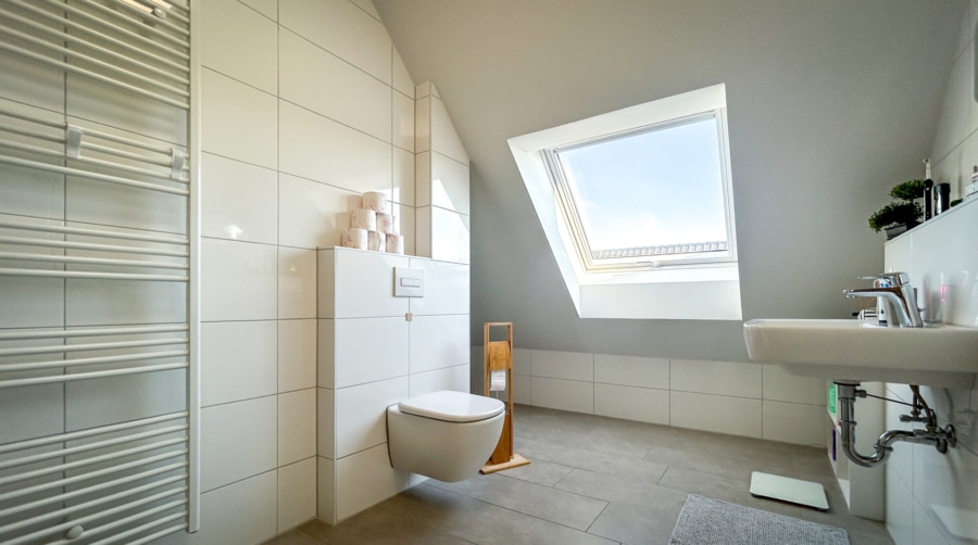 - Modernes Tageslichtbad mit ebenerdiger Dusche