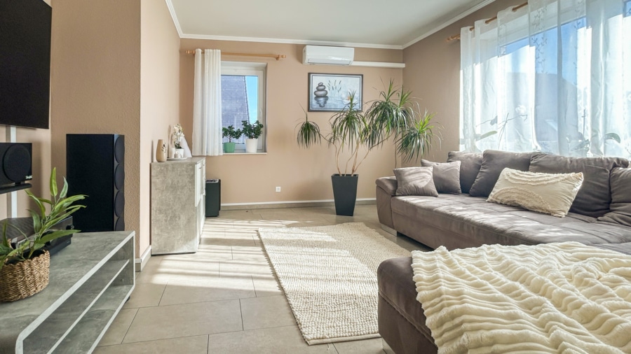 Für hohen Wohnkomfort sorgen Fußbodenheizung, eine energieeffiziente Luft-Wärmepumpe sowie eine Klimaanlage, die auch an warmen Tagen für angenehme Temperaturen sorgt. Die Immobilie befindet sich in einem sehr gepflegten, neuwertigen Zustand. Laut Energieausweis wird das Gebäude über eine Luft/Wasser-Wärmepumpe beheizt und weist einen sehr guten Endenergiebedarf von 24,3 kWh/(m²a) auf.
