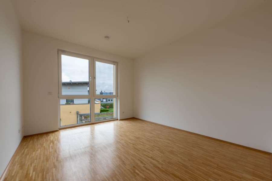 Im hinteren Teil der Wohnung befinden sich das Schlafzimmer sowie ein weiteres Zimmer, das flexibel als Kinder-, Gäste- oder Arbeitszimmer genutzt werden kann. Beide Räume sind mit hochwertigem Parkettboden ausgestattet.