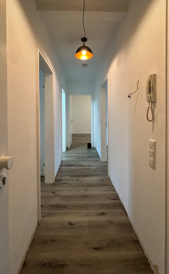 Diese gepflegte, gut geschnittene 3-Zimmer-Wohnung befindet sich im 1. Obergeschoss eines 4-Parteien-Wohn- und Geschäftshauses in bester Innenstadtlage von Emsdetten. Über das gepflegte Treppenhaus gelangen Sie in den Flur der modernisierten Wohnung. Auf rund 85 m² erwarten Sie freundlich helle Räume, ausgestattet mit modernem Laminat und zeitlosen Fliesen, wobei alle Zimmer bequem vom Flur aus erreichbar sind.
