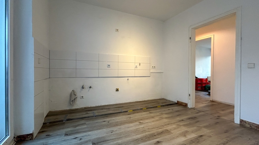 Die Wohnung überzeugt durch ihren praktischen Grundriss mit drei gut nutzbaren Zimmern, einer Küche ohne Küchenmöbel mit direktem Zugang zur ruhigen Dachterrasse sowie einem modernen Tageslichtbad. Neue Bodenbeläge und erneuerte Innentüren unterstreichen den gepflegten Eindruck der gesamten Wohnung. Die zum Innenhof ausgerichtete Dachterrasse bietet eine angenehme, geschützte Ruhezone – trotz der zentralen Lage mitten im Herzen von Emsdetten.