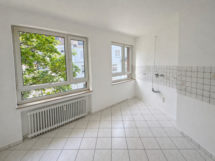 Die separate Küche überzeugt durch ihren großzügigen Zuschnitt und helle Fensterflächen, die für viel Tageslicht sorgen und ein angenehmes Raumgefühl schaffen.