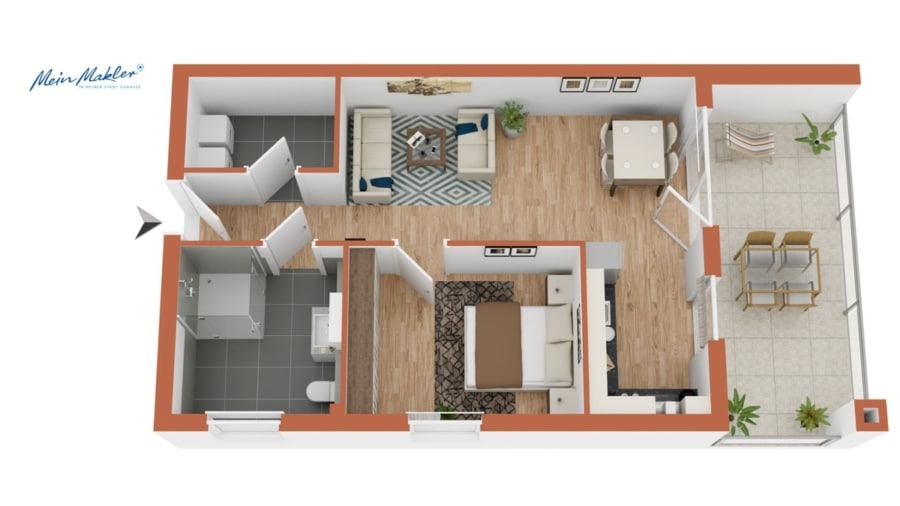 Die Wohnung eignet sich besonders für die Generation, die Wert auf Komfort, Übersichtlichkeit und Qualität legt. Der Grundriss ist klar, die Räume hell und gut nutzbar. Sowohl vom Wohn- und Essbereich sowie aus der Küche geht es hinaus auf eine große und geschützte Loggia – ein Ort zum Durchatmen.