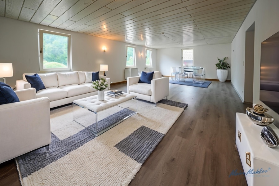 Willkommen in Ihrem neuen Zuhause! Diese frisch renovierte 7-Zimmer-Maisonettewohnung erstreckt sich über ca. 199 m² Wohnfläche und überzeugt durch ein großzügiges Raumangebot, moderne Ausstattung und einen traumhaften Ausblick ins Grüne.